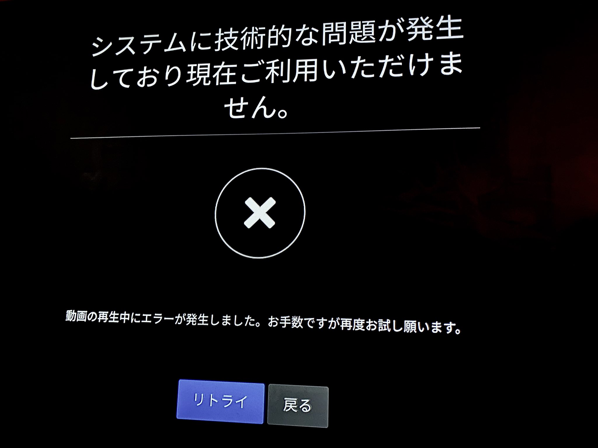 FireTVでディズニープラス再生してたのを停止してWiFi設定変更、再生開始したら技術的なエラーで死んだぞ…。FireTVから再起動したら一応はまた見れるようになった。